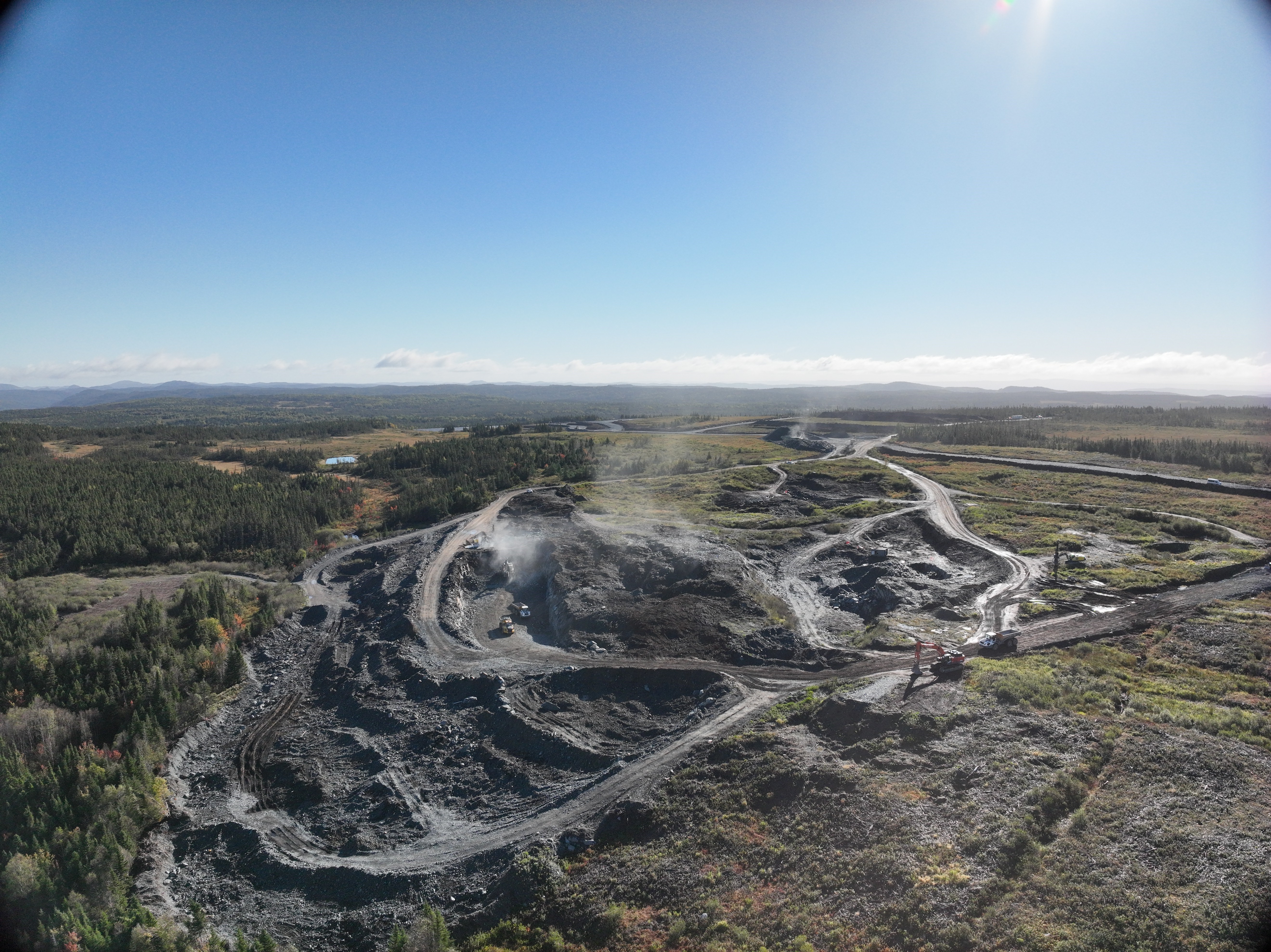Construction at Hammerdown has focused on completing the necessary civil earthworks to support mine operations. This has included constructing a 20,000 cubic meter lined settling pond for site contact water management, and upstream associated collection and diversion ditching. Designed to handle a 1-in-100 year storm event, the pond will aid in the management of water quality prior to release to the environment. In addition, civil works for site access and haul roads, run of mine and crushed ore storage pads, foundations for the permanent crushing plant, storage areas for stripped organics and overburden have all been completed. As a brownfields mine site, Hammerdown is located close to existing infrastructure including the NL Hydro grid only 500 metres away along Highway 391. During construction Maritime's site team successfully sourced over 70,000 tonnes of blasted waste rock stored on surface from the original Hammerdown mine's underground development for use in site construction work, saving nearly $0.3 million of drilling and blasting costs for the Project.
