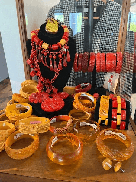 Colorful, chunky and often carved, Bakelite jewelry was also affordable, hitting its peak of popularity in the Depression. Today the pieces are highly collectible. (Photo credit: Beth Szymkowski)