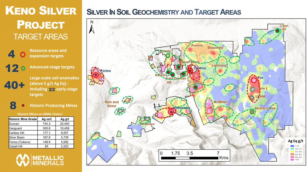 Keno's exploration portfolio now includes more than a dozen targets with encouraging early results and dozens of additional undrilled targets, underscoring the project's district-scale upside in a proven, high-grade silver camp.