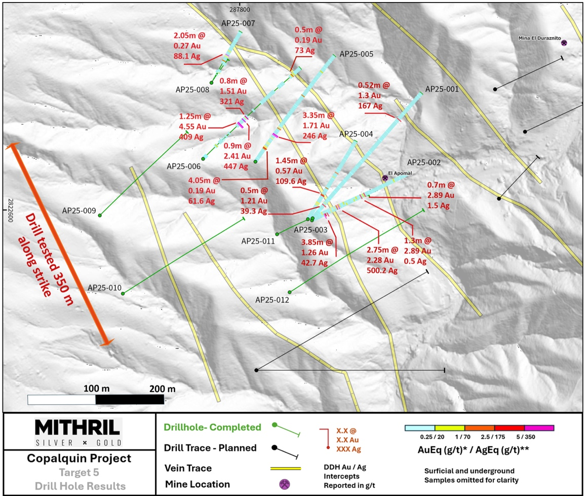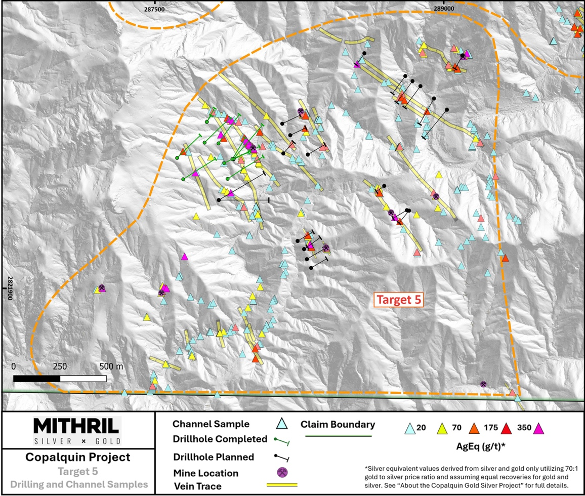 "Target 5 is rapidly emerging as a major new silver-dominant zone within the broader Copalquin epithermal system where drilling continues, with holes at the high-grade Tasolera mine area commencing this week. At the same time, Mithril continues to advance Target 3 to drill readiness with ongoing mapping and sampling, while at Target 1 drilling is testing the western extension of the maiden resource area toward the El Gallo mine, 900 metres to the west."