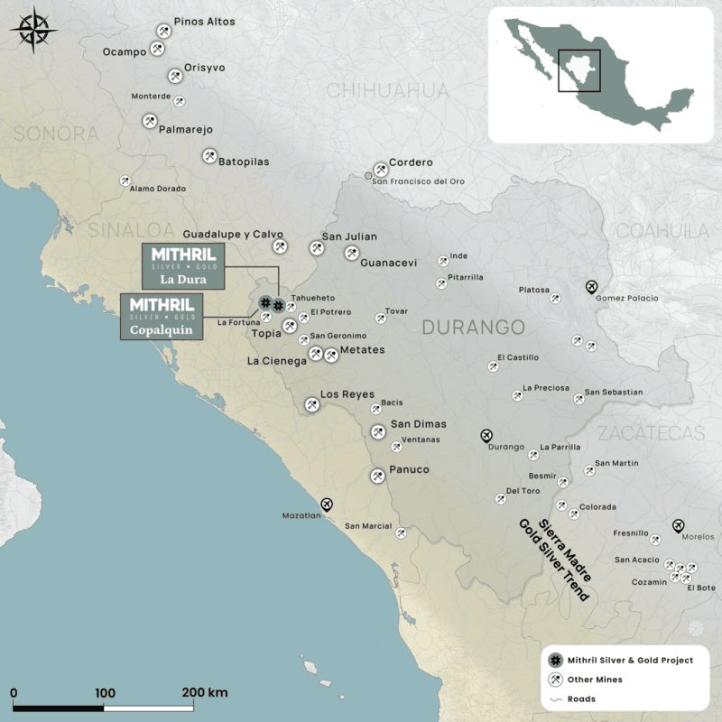 Figure 1 Mithril's Copalquin and La Dura property locations in Durango State, Mexico