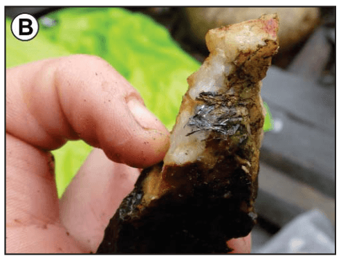 Figure 4: Plate 7B (p. 100) of Updated Geology of the St. Alban's Map Area (NTS 1M/13) (Westhues, 2017) illustrates coarse stibnite hosted within quartz veins at the Pardy Head occurrence.