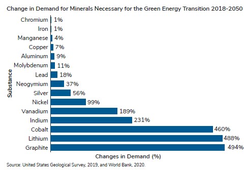 Graphite demand is expected to increase exponentially for the mined natural graphite material, as more is used in the production of spherical graphite for graphite in the anode portion of Electric Vehicle Lithium-ion batteries.