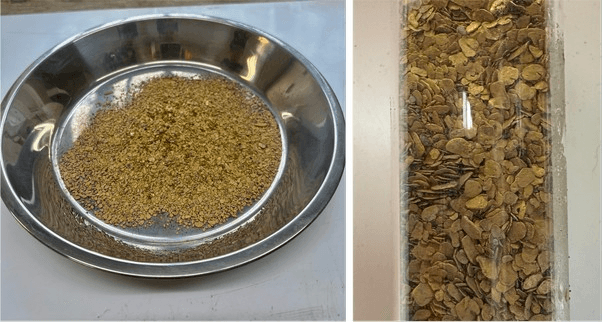 4. Gold Recovered on Shaker Table – placer gold close-up in sample tube
