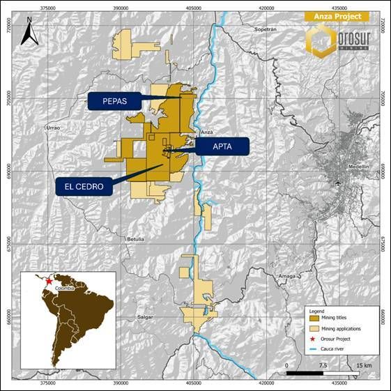 These titles and applications are owned by two Colombian companies, Minera Anzá, and Minera Monte Aguila, both wholly owned subsidiaries of the Company. The latter of these was acquired by Orosur in November 2024 from the Company's previous JV partners, Newmont Mining and Agnico Eagle Mines. Orosur thus owns 100% of the Anzá Project.