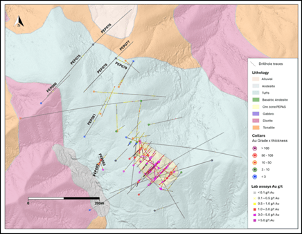 In the meantime, following these NE sections, hole PEP082 was drilled to follow up drill intersections from two previous holes in early 2025.