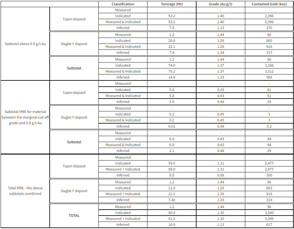 MINERAL RESOURCE ESTIMATE FOR DUGBE F