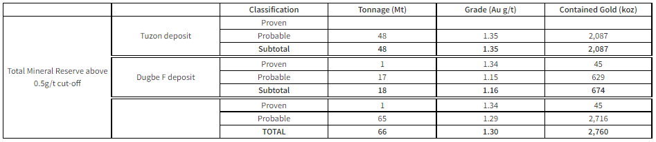 - Tuzon and Dugbe F deposits are 4km apart, serviced by a central processing plant.