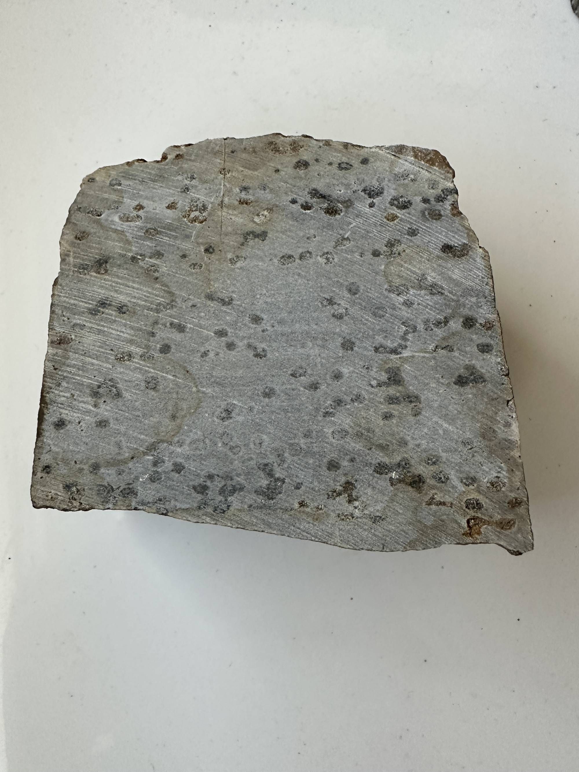 Outcrops with coticule alteration in sediments (Photo 3) also occur at the south end of the magnetic anomaly. This style of hydrothermal alteration occurs at the Sullivan deposit.