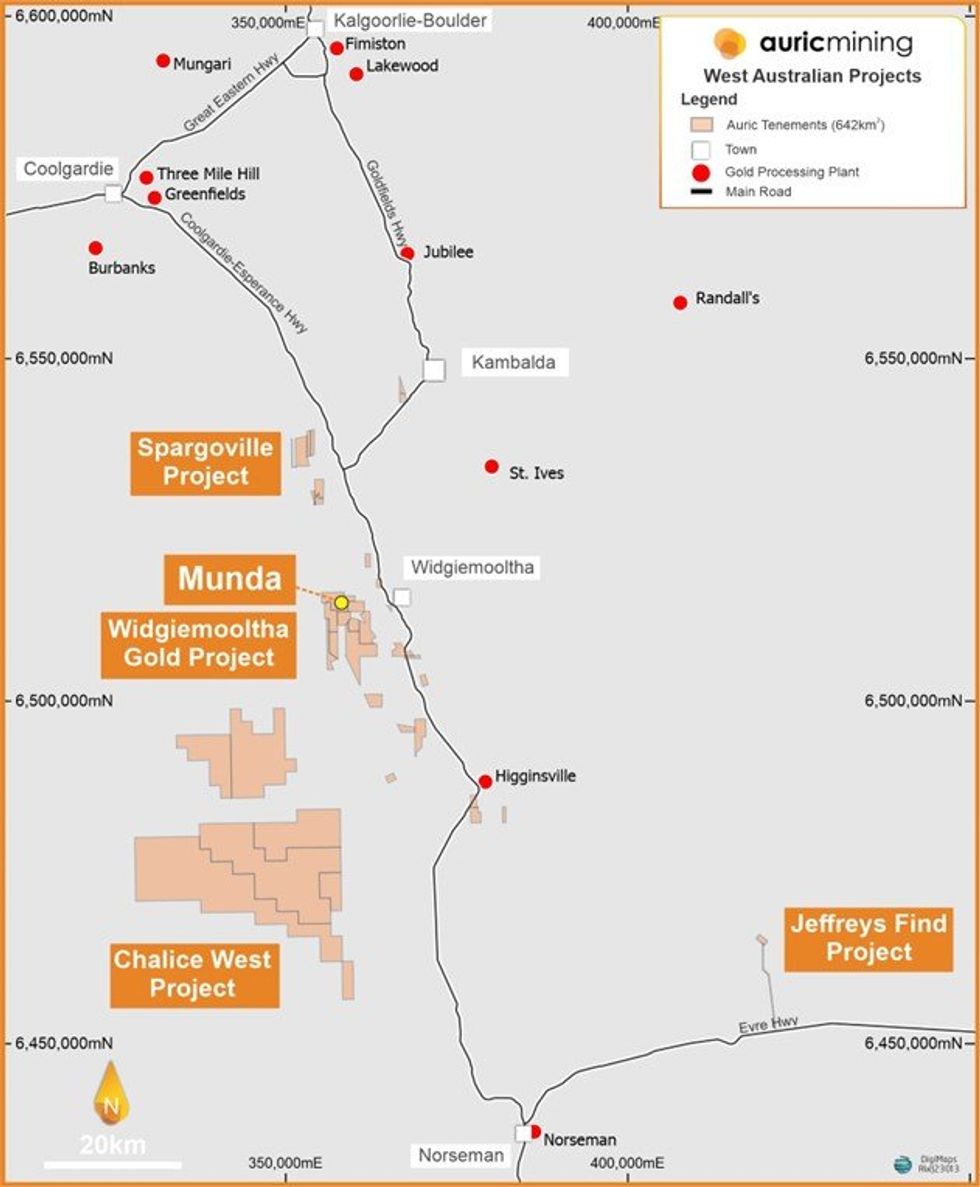 Auric Mining Limited (ASX: AWJ) (Auric or the Company) is pleased to present the range of outcomes of a Scoping Study for open-pit mining and third-party toll treatment of the Munda gold deposit, (Munda or the Project) which is located 98km south of Kalgoorlie in Western Australia.