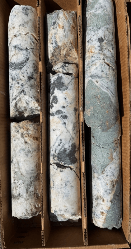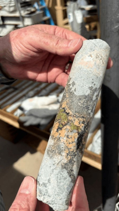 The potassic alteration observed is often a hallmark of higher-temperature (typically formed at 400–600 °C) magmatic fluids that can be associated with productive porphyry copper deposits worldwide. In the lower portions of hole SK-26-07, potassic alteration manifests as:
