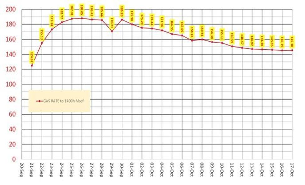 - Continued flow testing from production test wells 2271-KA03PT06 and 71-KA03PT10 delivered sustained strong gas flows, producing a combined total volume of nearly 8 million cubic feet of gas.