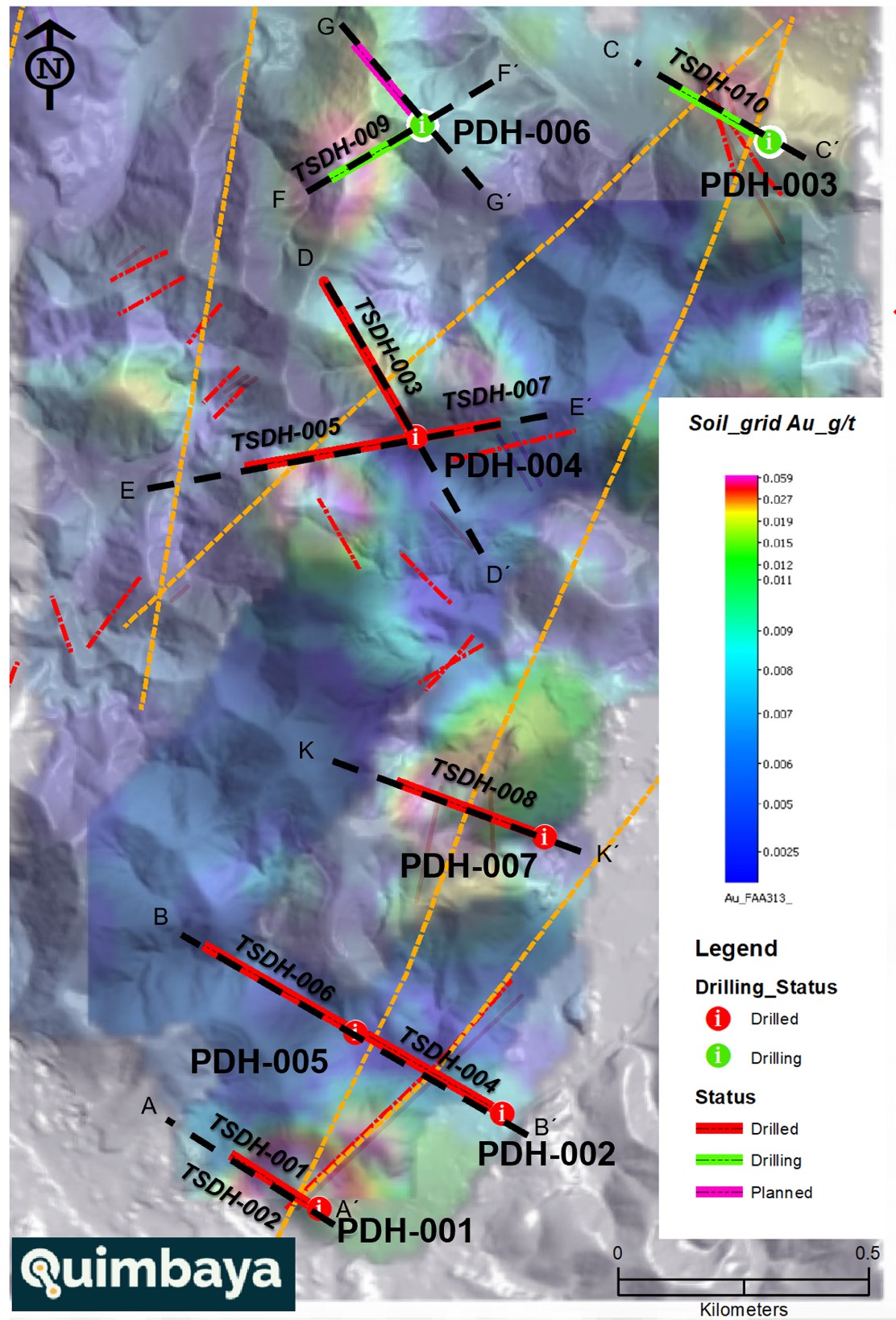 While initial assay results have been received from select drill holes, the Company is continuing to await the return of a significant portion of its Phase 1 drill campaign. In the interest of providing a more complete and technically coherent picture of the emerging discovery at Tahami South, Quimbaya intends to release assay data once a critical mass of results has been compiled. This approach ensures a balanced and contextualized interpretation of both grade distribution and structural continuity, and reflects the Company's commitment to disciplined, data-driven disclosure as the scale of the system comes into focus.