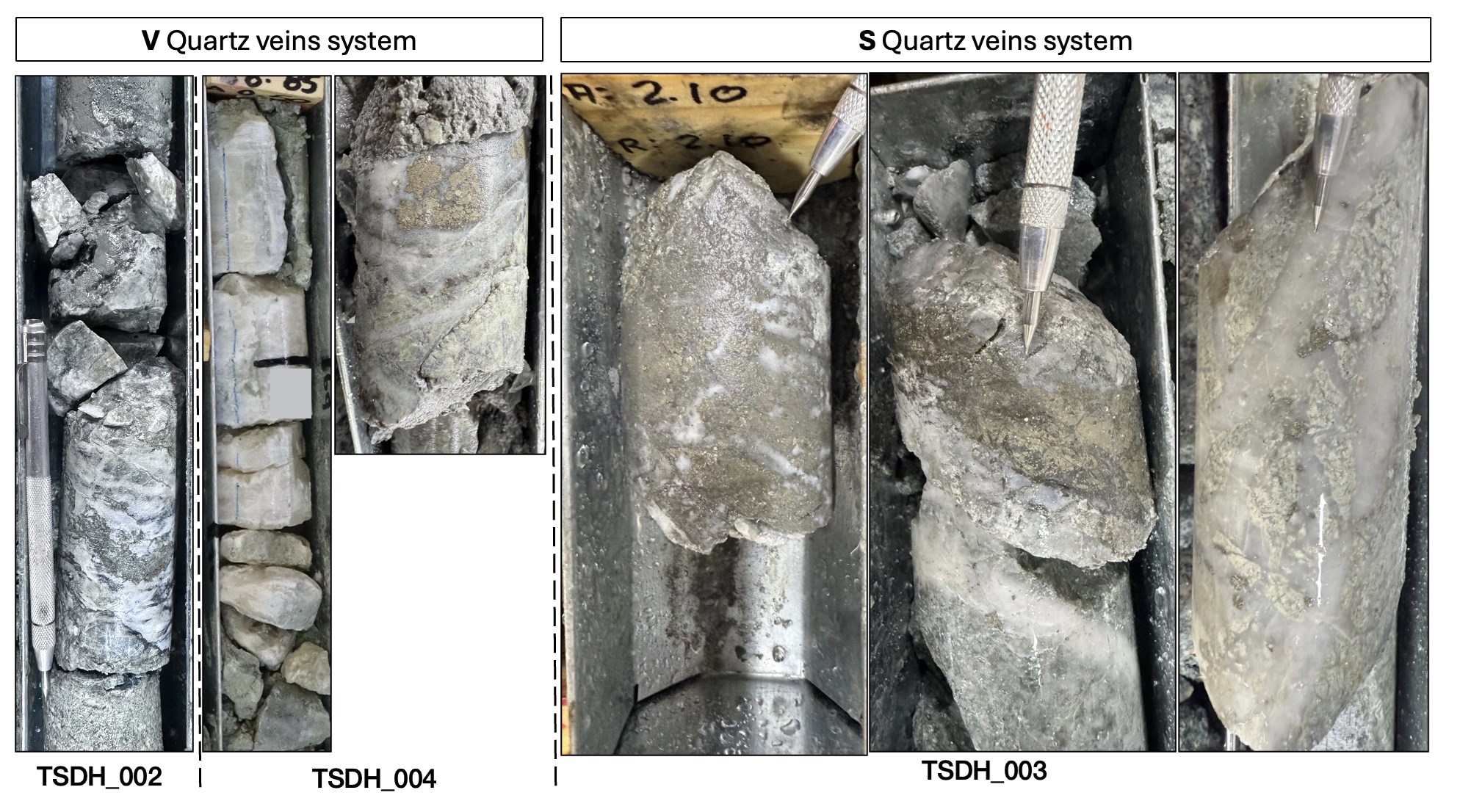 Two distinct vein structures system (S & V) discovered, confirming Segovia-style mineral continuity on Quimbaya's ground.