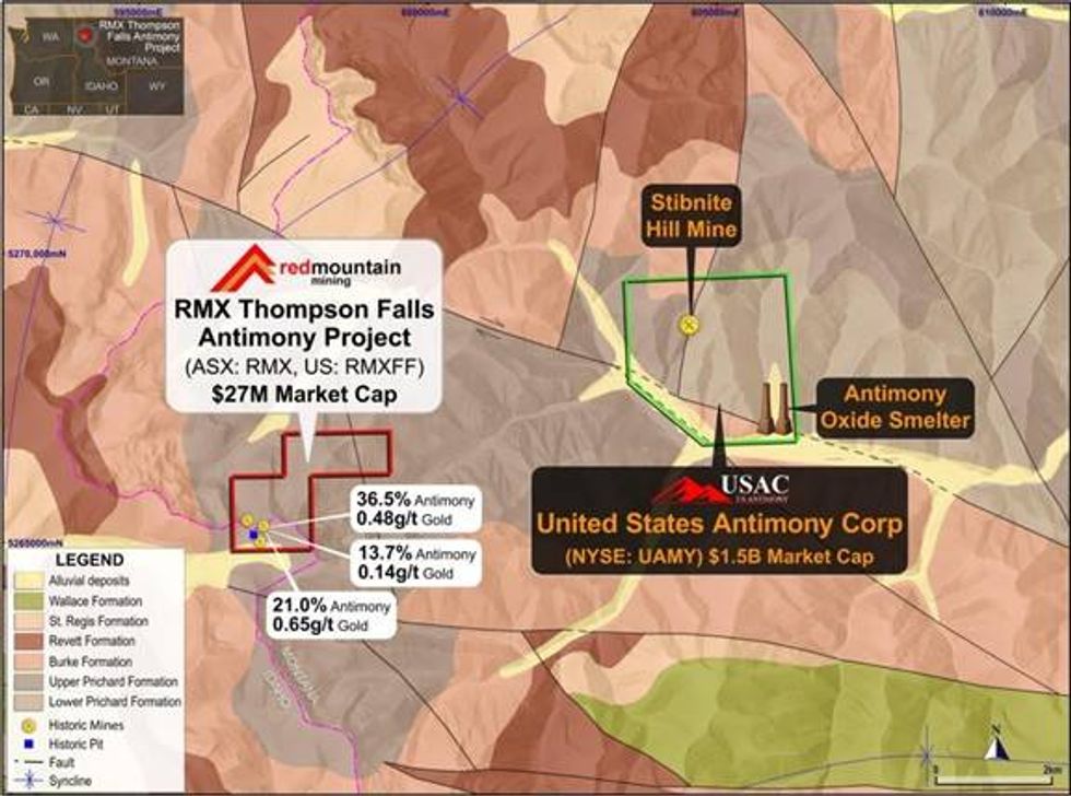 Thompson Falls Antimony Project, High-grade Antimony next to UAMY Antimony Smelter