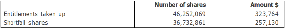Pursuant to section 1.4 of the Entitlement Offer Booklet date 17 July 2023, the Directors reserve the right to place any shortfall shares as detailed above at their discretion within 3 months of the Closing Date.