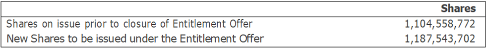 The Board would like to express their thanks for the support provided by participants in the Entitlement Offer.