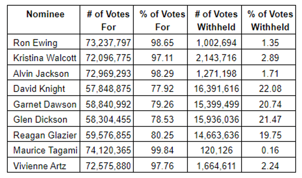 The following nine nominees were elected as directors of Freegold. The detailed results of the vote for the election of directors are set out below:
