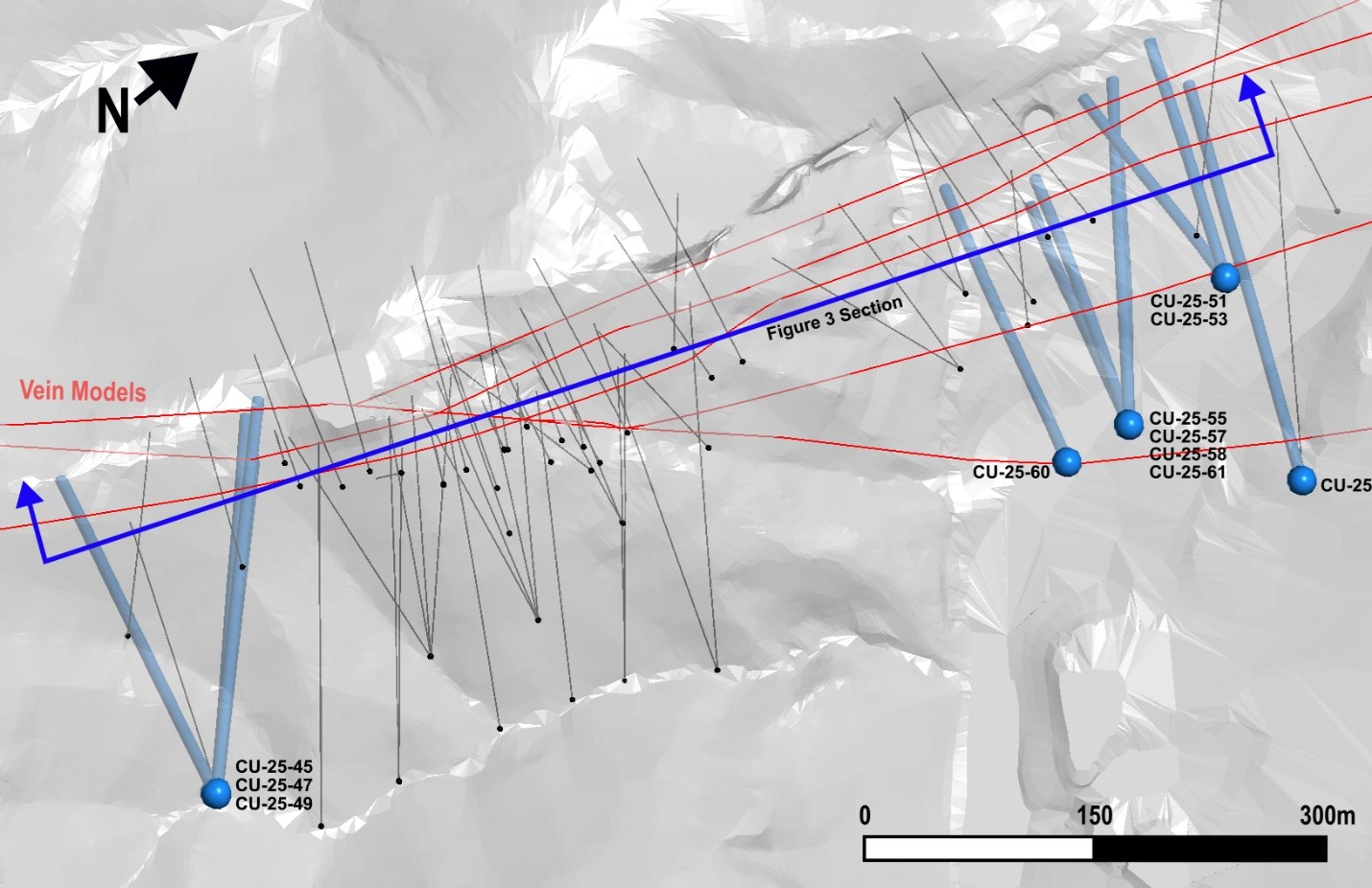 The final results from the 2025 program have continued to demonstrate the excellent continuity and grade potential at San Miguel. Over the program, Silverco successfully defined the vein over a strike length of 750 metres. Drilling on the west of San Miguel returned 13.6 metres grading 370 g/t AgEq and 3.9 metres grading 548 g/t AgEq in hole CU-25-45. Hole CU-25-43, which was drilled approximately 50 metres below CU-25-45, returned 12.0 metres grading 236 g/t AgEq. These intercepts in combination with the results released on November 26, 2025, have outlined a zone of significant vein widths within the San Miguel system.