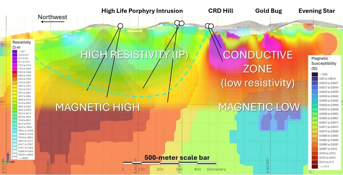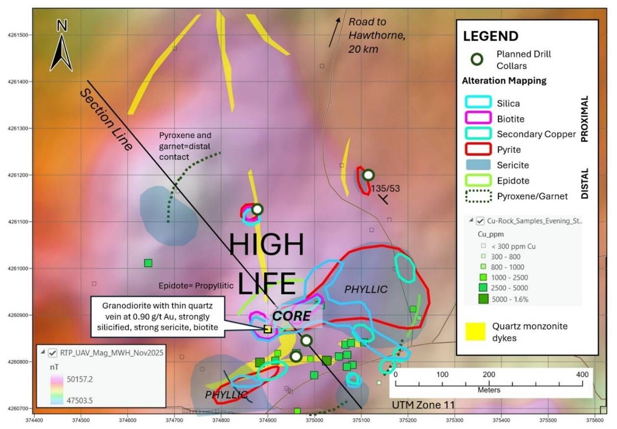 The interpreted copper-gold core of the porphyry system at High Life
