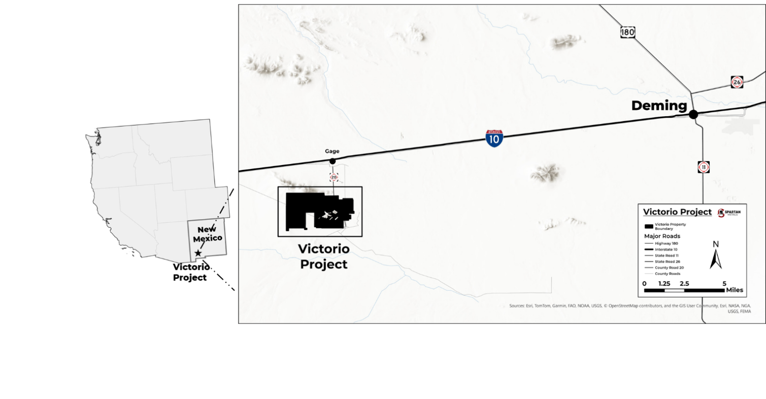 Vancouver, Canada TheNewswire - March 17, 2026 Spartan Metals Corp. ("Spartan" or the "Company") (TSX-V: W OTCQB: SPRMF | FSE: J03) is pleased to announce that it has entered into a definitive option agreement (the "Agreement") dated March 13, 2026, with Donegan Resources, LLC ("Donegan" or the "Owner"), an arms-length party. Pursuant to the Agreement, Spartan has been granted the option (the "Option") to earn a 100% interest in the Victorio Tungsten-Molybdenum Project ("Victorio" or the "Project") in Luna County, New Mexico (Figure 1).