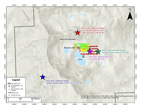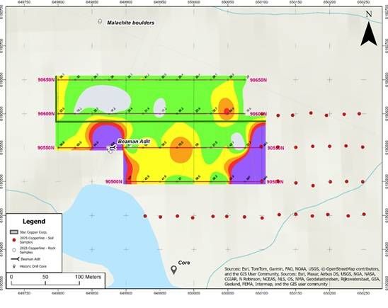 On October 30, 2025, Star Copper completed its inaugural reconnaissance field program on the 945-hectare Copperline Property, located approximately 120 km north-northeast of Smithers, British Columbia. The program successfully confirmed historic copper-silver mineralization and collected infill soil samples designed to test extensions of known geochemical anomalies. Assay results are pending.