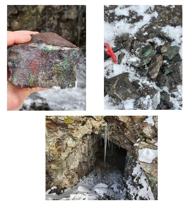 Confirmed visible copper mineralization at the historic Beaman Adit - four rock grab samples collected