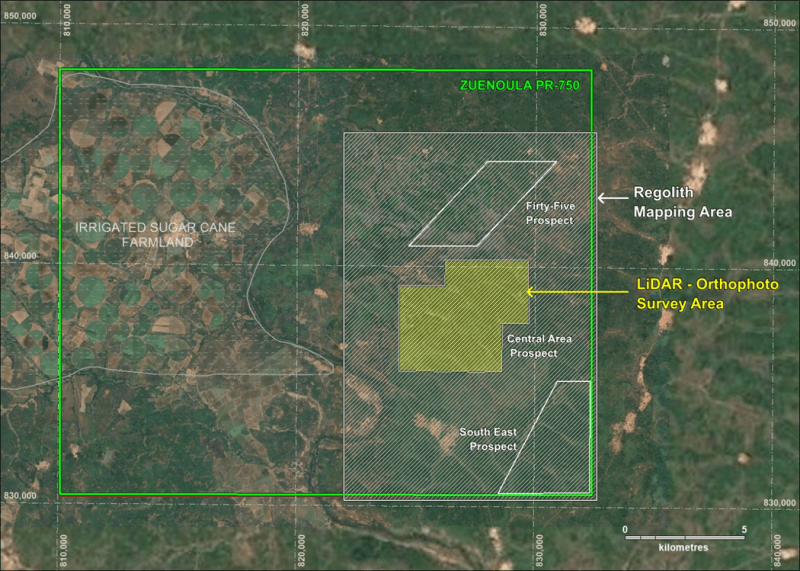In parallel with the regolith mapping program, MetalsGrove will undertake a UAV-based LiDAR survey covering approximately 21 km² over priority areas of the Zuénoula permit.
