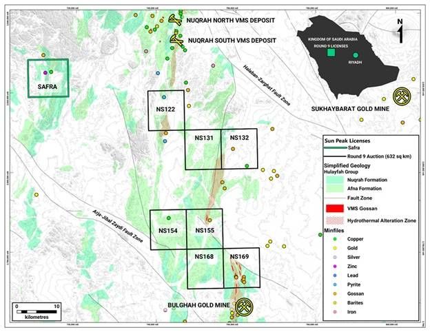 VANCOUVER, BC / ACCESS Newswire / March 31, 2026 / Sun Peak Metals Corp. (TSXV:PEAK,OTC:SUNPF)(OTCQB:SUNPF) ("Sun Peak" or the "Company") today announced the acquisition of seven exploration licenses totaling 632 km² through the Kingdom of Saudi Arabia's Round 9 licensing auction. The licenses awarded significantly expand Sun Peak's footprint within the Arabian-Nubian Shield, with the Company now holding 1,072 km² across 13 exploration licenses in Saudi Arabia.