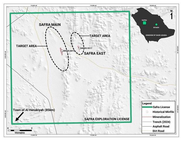 The Company is also awaiting the finalization of the Saudi Arabian Ministry of Industry and Minerals ("MIM") Round 9 Auction, which is expected to add approximately 700 km² along established VMS trends, as well as two (2) additional applications currently under review.