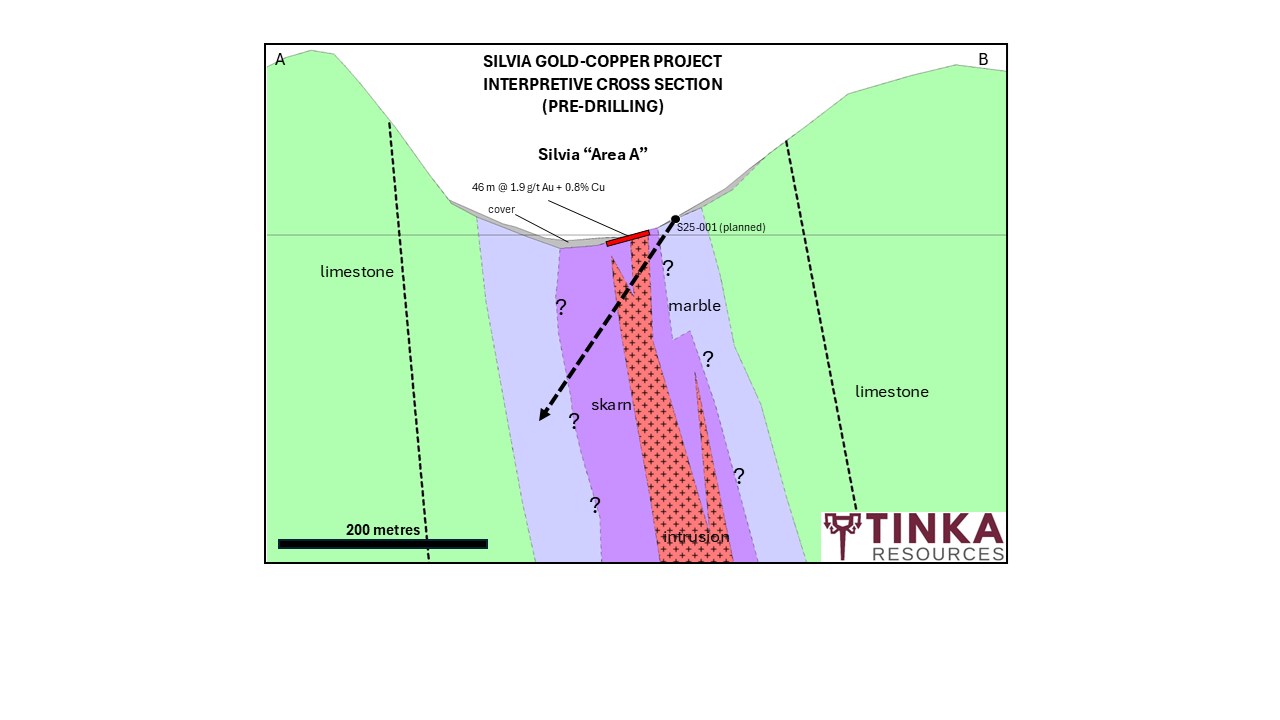 - Drill program to test compelling gold and copper exploration target - initial program consists of four diamond holes planned to a depth of up to 400 metres to test beneath outcrops of high-grade gold-copper skarn mineralization at "Area A".