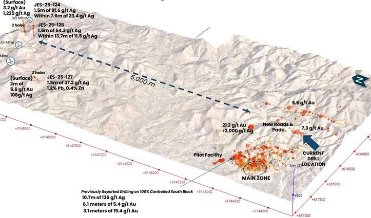 Drilling continues to advance efficiently in the South Block following the restart announced earlier this month. Six exploration holes have now been completed across four new high-priority target areas, testing previously un-drilled structural and geochemical corridors with strong potential for gold-silver mineralization.