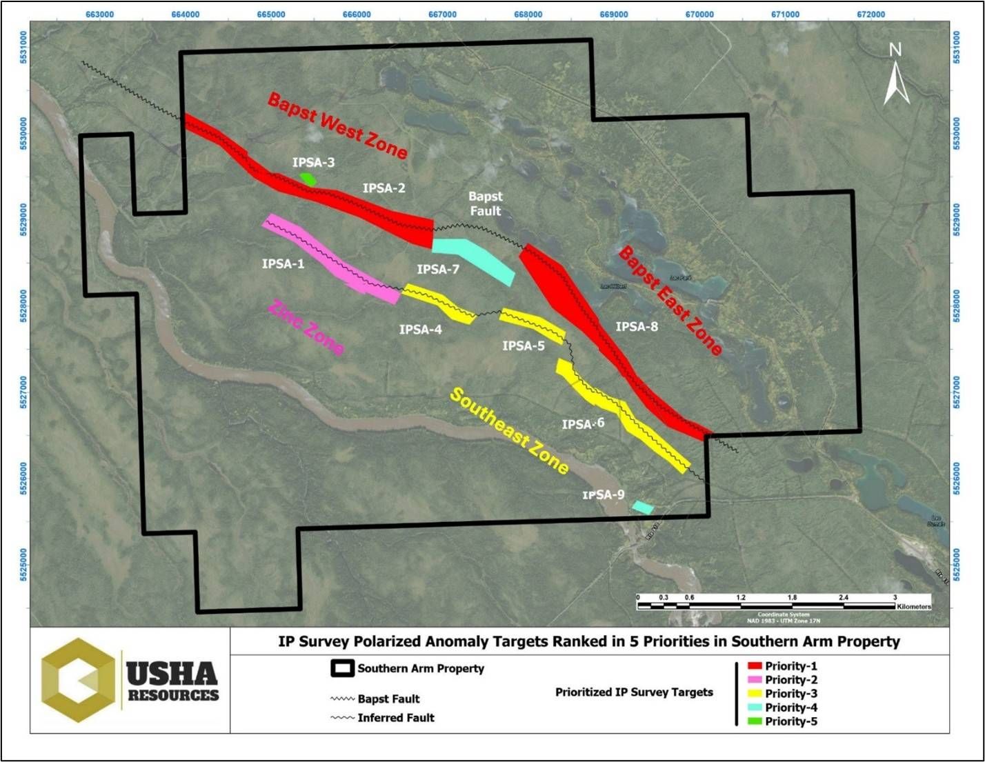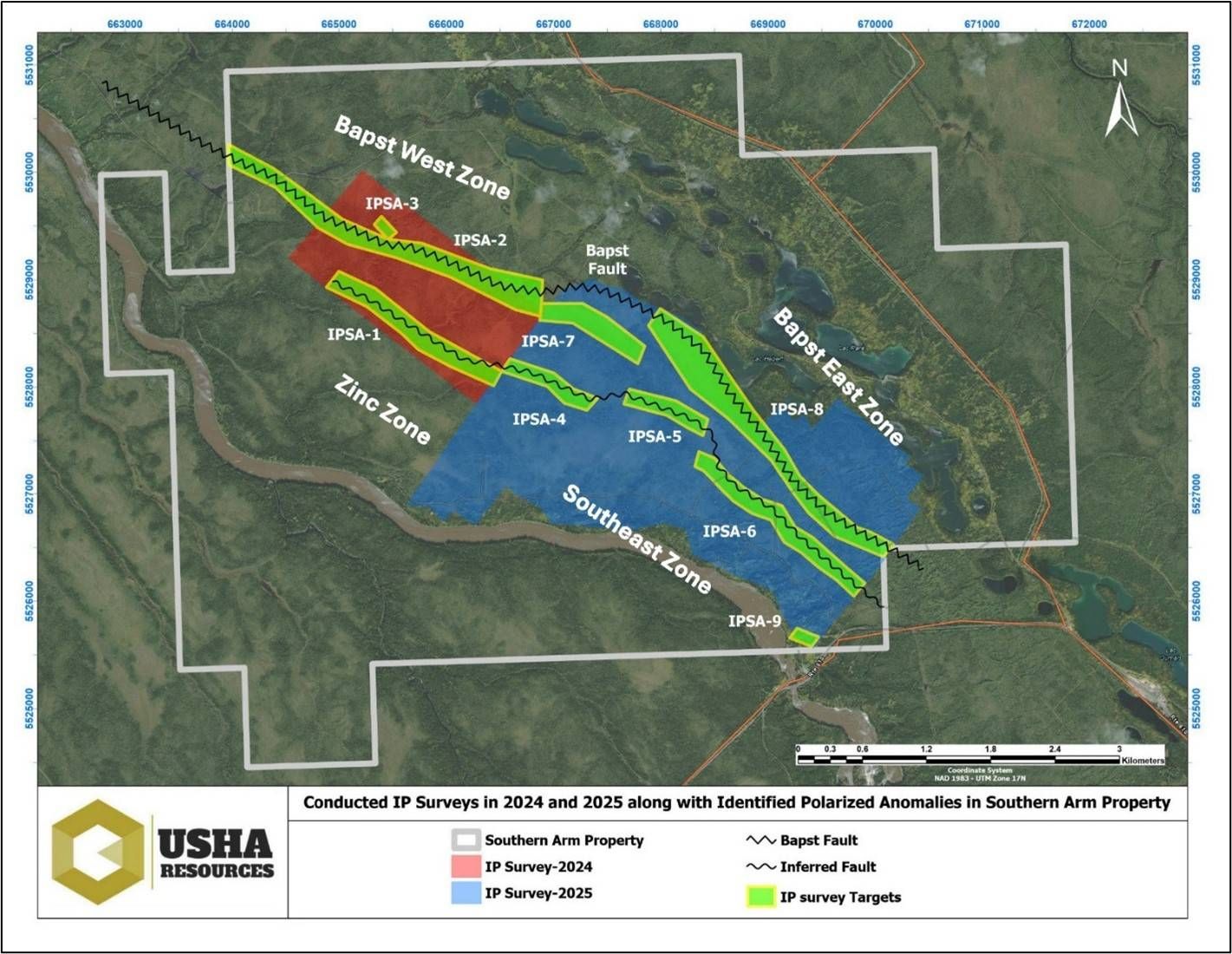 VANCOUVER, BC / ACCESS Newswire / March 27, 2026 / Usha Resources Ltd. ("Usha", "USHA" or the "Company") (TSXV:USHA,OTC:USHAF)(OTCQB:USHAF)(FSE:JO0), a North American mineral acquisition and exploration company, is pleased to announce the completion of a significant extension to its 2024 ground IP survey (See News Release, December 24, 2024) aiming to evaluate the potential of the three geophysical high potential zones, identified by the initial IP survey, and also enhancing target definition and focusing exploration efforts on identifying potential sulphide-associated mineralization at its Southern Arm polymetallic VMS property ("Southern Arm" or the "Property") in the metal-rich northwest Abitibi sub province of mining-friendly Quebec province.
