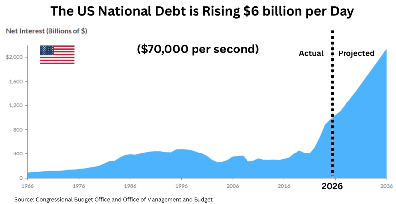 "The country with the largest debt—$39 trillion and counting—is the United States," writes WRLG founding strategic investor Frank Giustra on March 23, 2026. "Interest on that debt now exceeds defense spending."
