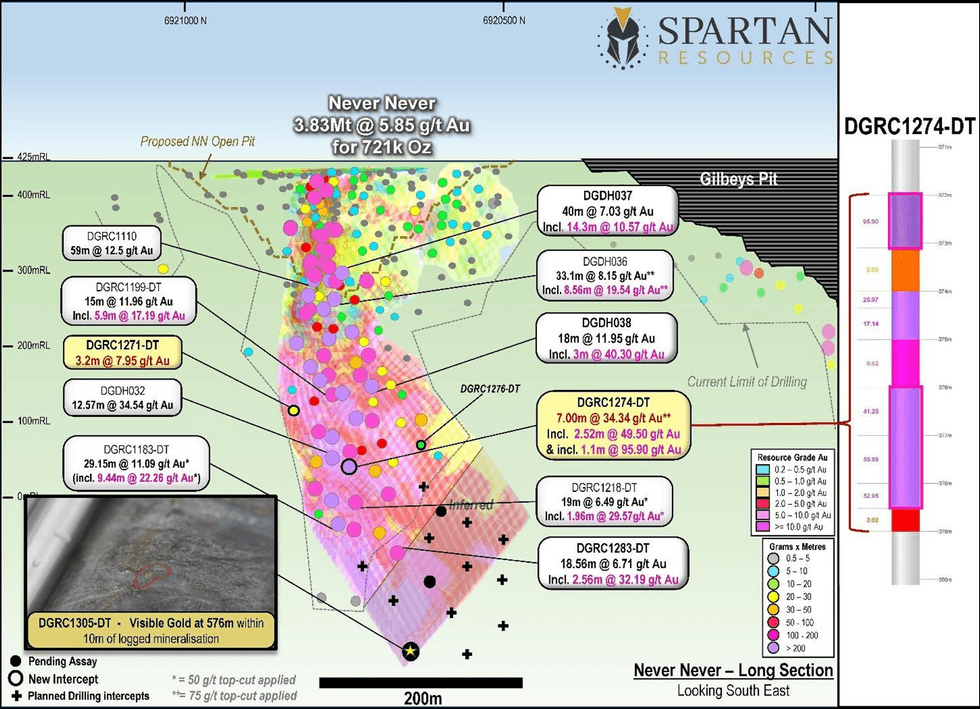 Spartan Resources Limited (“Spartan” or “Company”) (ASX: SPR) is pleased to report significant new drilling and assay information from ongoing drilling targeting the high-grade Never Never Gold Deposit at at its 100%-owned Dalgaranga Gold Project in Western Australia.