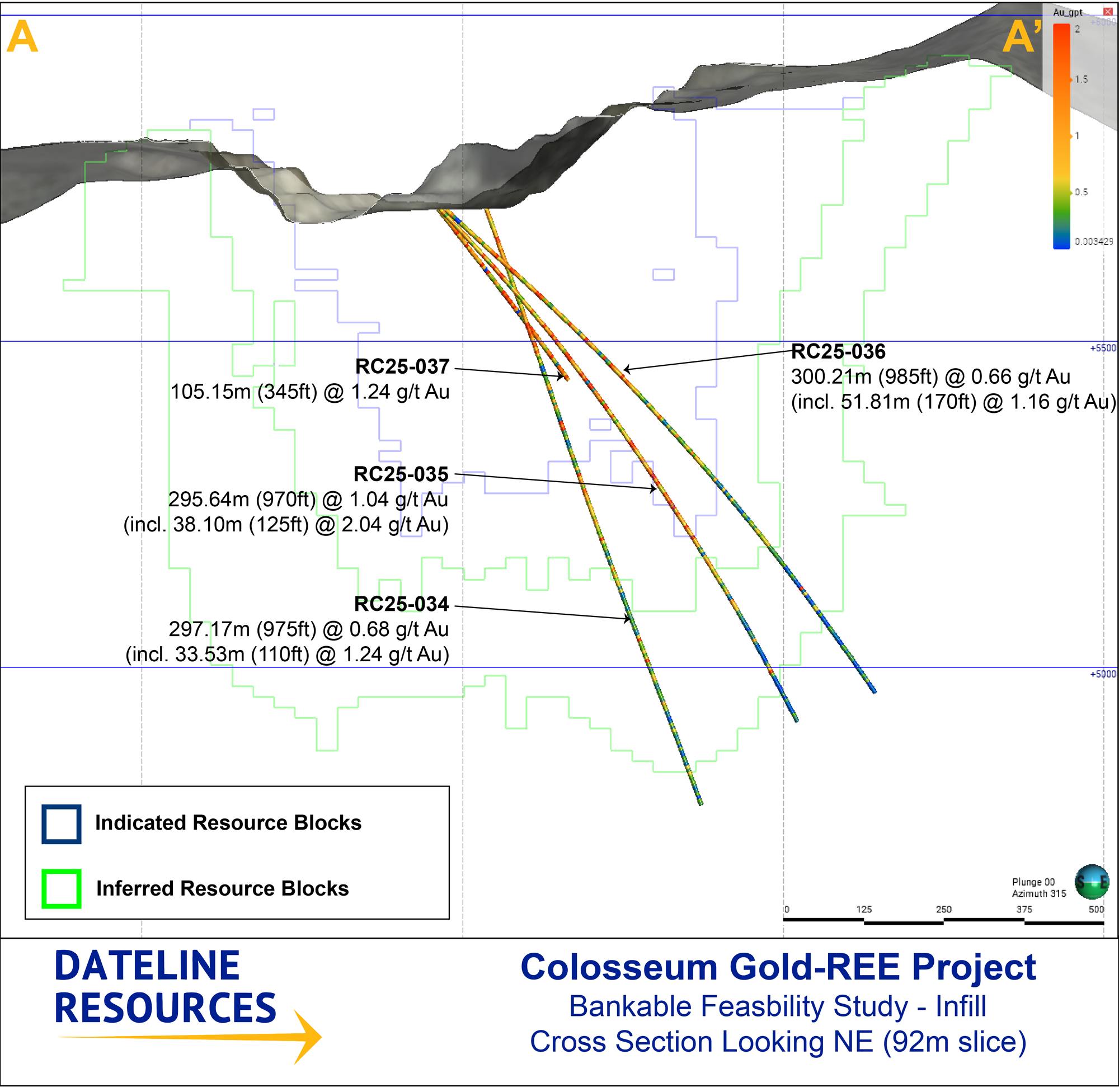 RC25-034 returned 297.17m (975ft) @ 0.68 g/t Au from surface