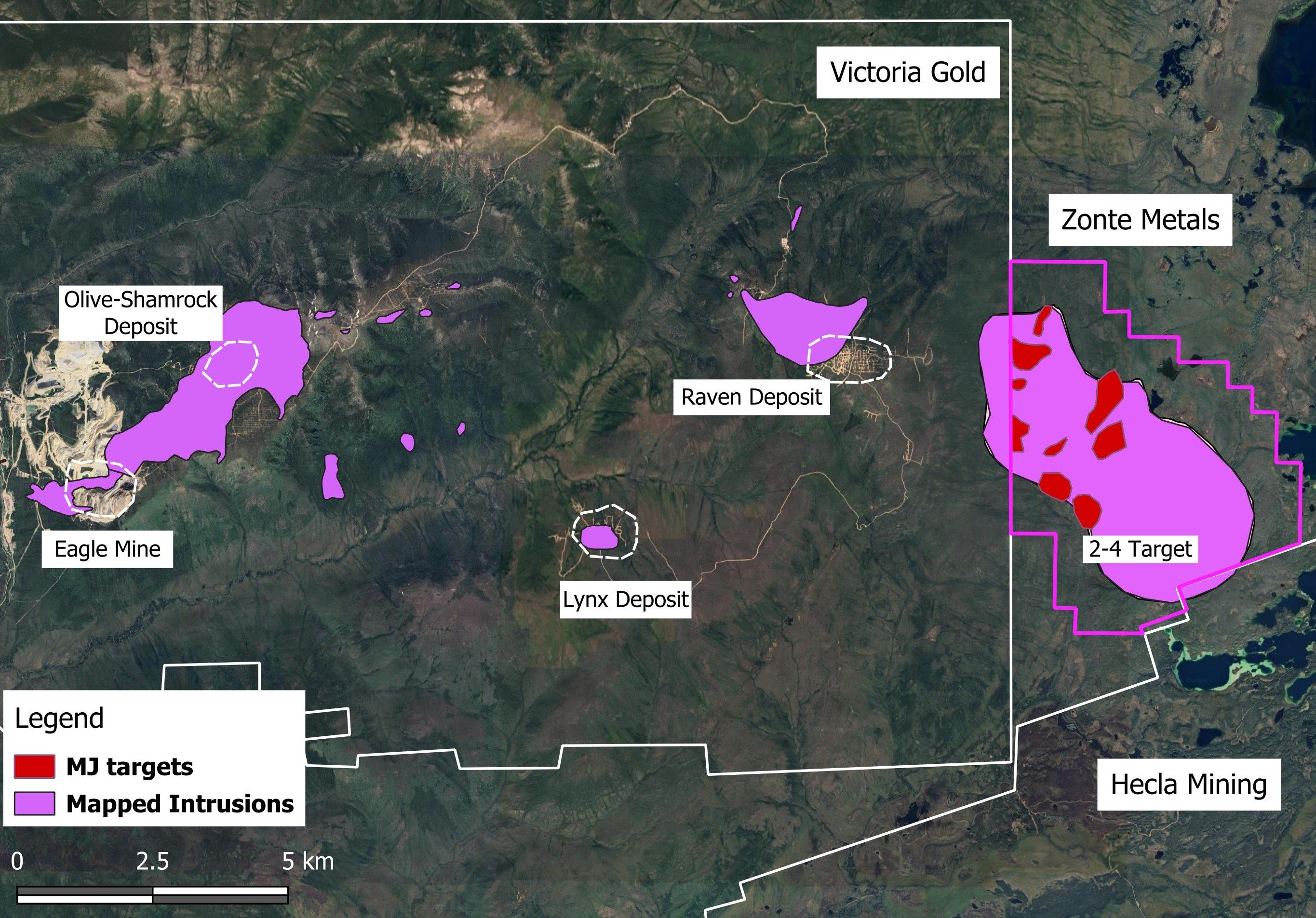 The MJ project sits just east of the Raven Deposit on Victoria Gold's project and exploration completed by Zonte and published geological mapping by Victoria Gold suggests the Raven and MJ systems could be one larger intrusive target area within a structural corridor. The Raven deposit, considered high-grade for the intrusion related gold systems, is host to higher grade sulphide veins which are also common within the MJ intrusion. (see Victoria Gold press release dated Oct 25, 2023 and Zonte Press Release Oct 6, 2017).